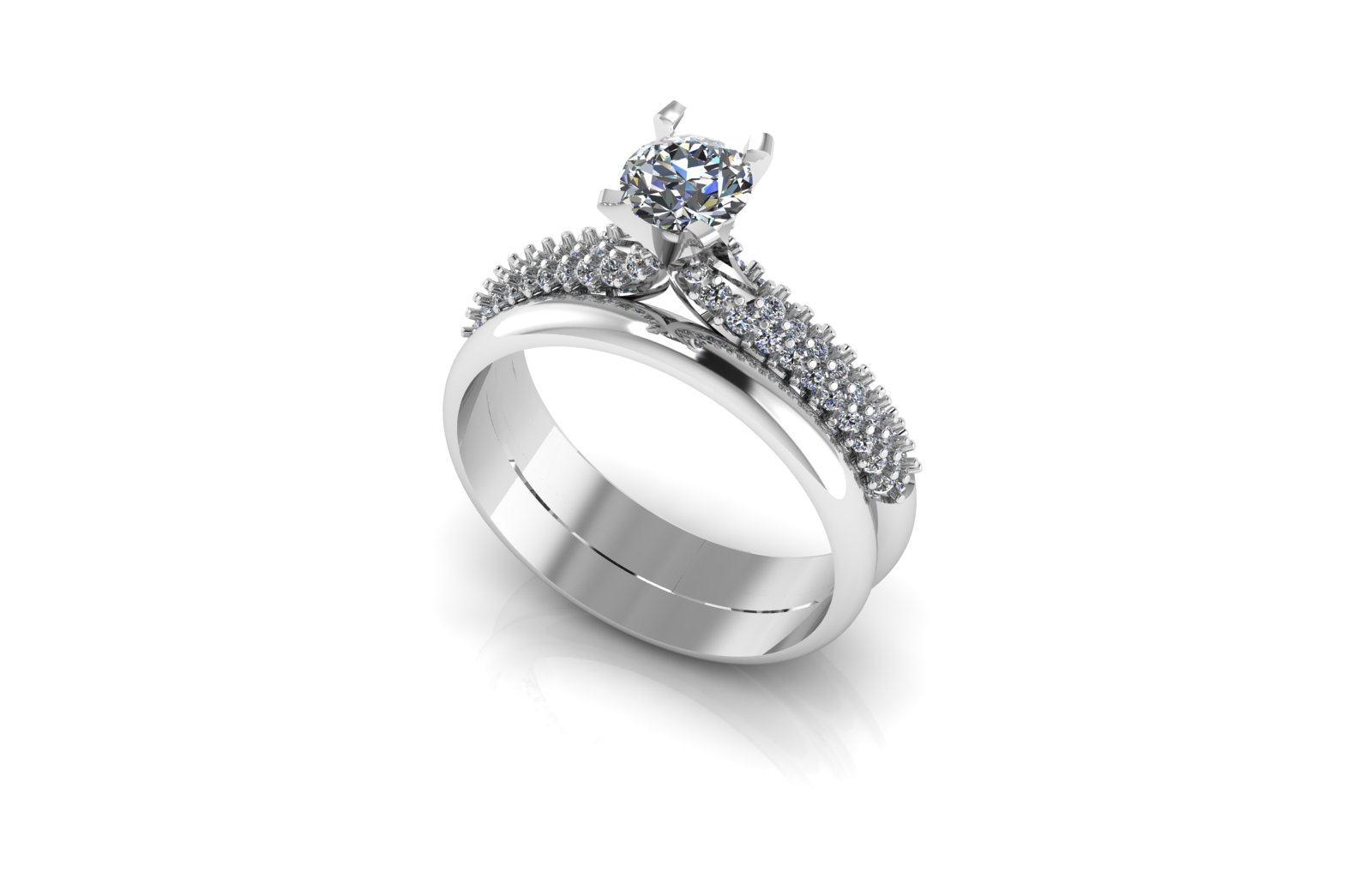 Wedding ring, engagement ring full of diamonds with a beautiful design in two pieces.